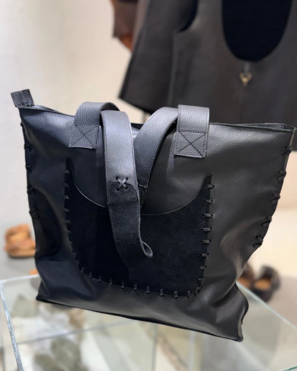 Bolso artesanal de cuero con detalle de bolsillo en cuero gamuzado y soporte en la base. Si buscas una opción ccómoda y amplia para la facu o la oficina, el Hermes es tu mejor opción!